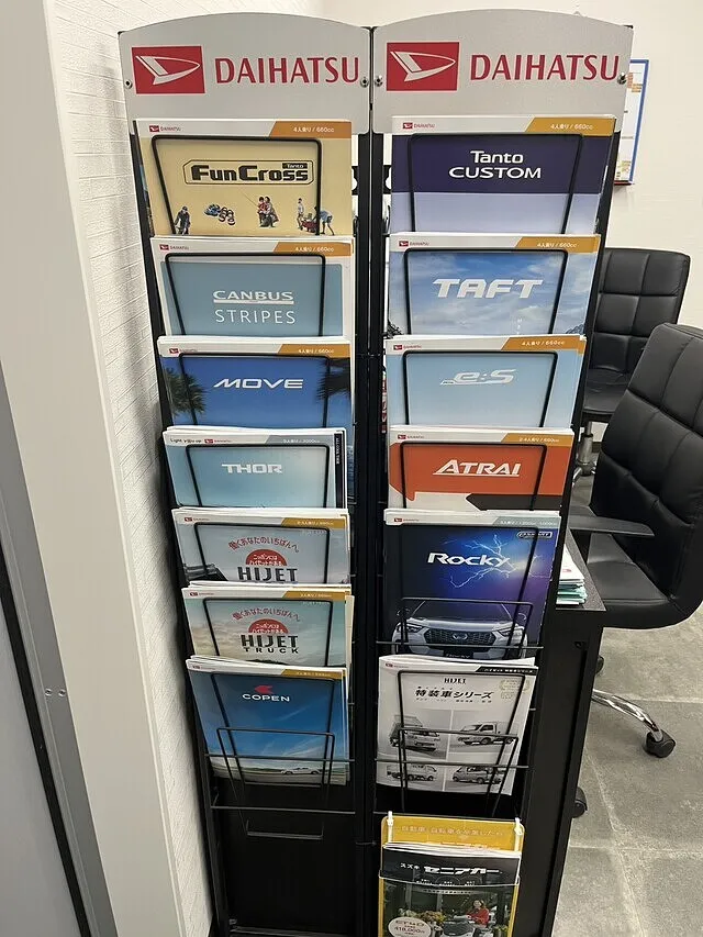 店頭には販売している全車両のカタログがございます。乗りたいお車が決まっていなくても、ぜひ冊子を手に取ってご覧ください。空きがあればそのまますぐに試乗もできますので、お気軽にスタッフまでお申し付けください。